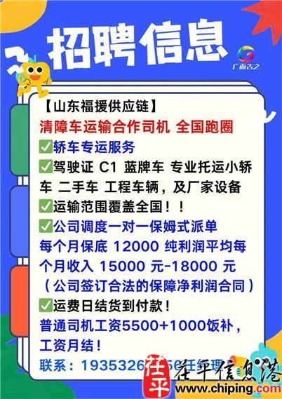 工作内容:开清障车全国运输私家车!全国跑圈!主要托运轿车,工程车,厂家设备,一圈大概一个月左右!!备注:要有一年以上独立工作长途高速货运经验的!!